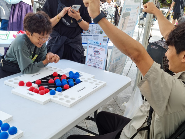 스포빙고볼은 공을 튕겨 빙고를 완성하는 신개념 뉴스포츠로, 규칙이 단순하면서도 승부의 긴장감이 넘쳐 참가자들의 발길이 끊이지 않았습니다. 어린이부터 청소년, 대학생 커플, 부부까지 모두 공을 튕기며 몰입했는데요, 보기보다 쉽지 않은데, 진짜 재밌다는 반응뿐만 아니라 대회가 열린다면 꼭 참여하고 싶다는 후기도 많았습니다! 실제로 “이거 어디서 살 수 있나요?”라며 구매처를 묻는 가족도 있을 정도로 반응이 폭발적이었답니다.