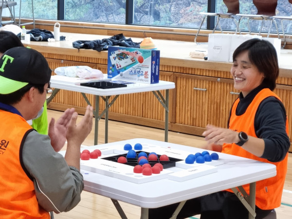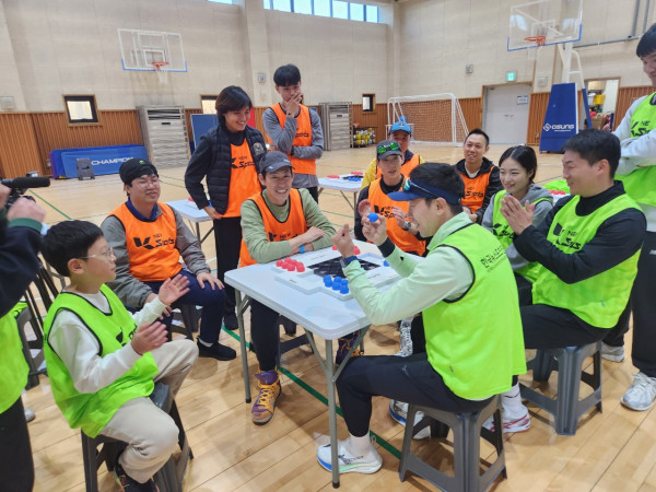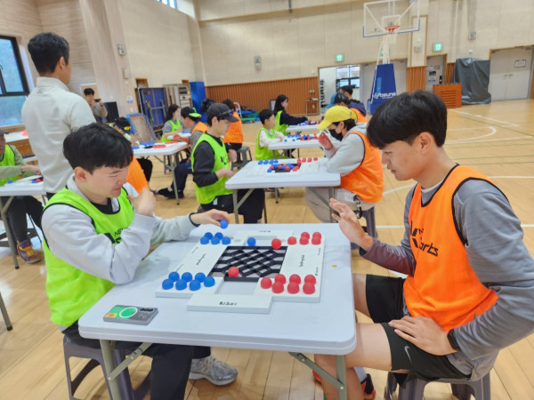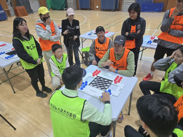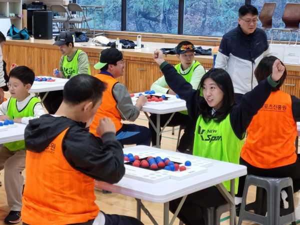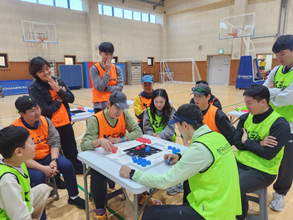 역시 전문 체육인답게 스포빙고볼의 규칙을 빠르게 이해하고, “어떻게 하면 아이들이 더 재미있게 즐길까?”를 서로 토론하며 열의를 보여주셨습니다. 실제 체험이 시작되자 곳곳에서 탄성이 터져 나왔고, 빠른 경기 흐름 속 다양한 변수가 등장하며 몰입도가 점점 더 높아졌습니다. 특히 교사분들이 가장 공감한 부분은 바로 “집중력이 승패를 좌우한다!”는 것이었죠.