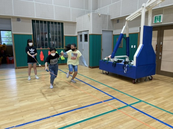 한발뛰기, 사이드스탭, 2~4명까지 손잡고 협동달리기, 바톤멀리던지기 등