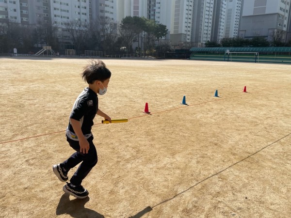 줄에 달린 바톤을 잡고, 다양한 달리기! 재밌는 달리기!