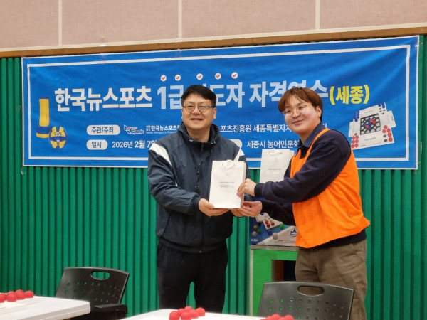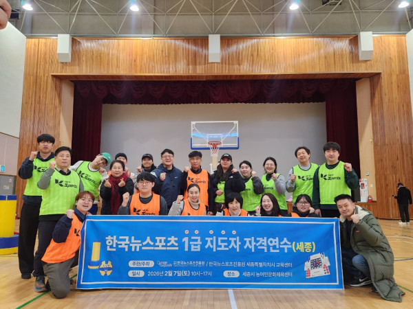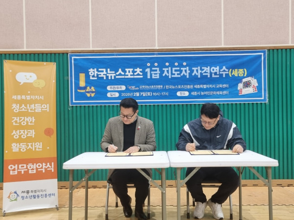 2026년 2월 7일(토) 세종시농어민문화체육센터에서 (사)한국뉴스포츠진흥원(원장 김창원)과 세종시 청소년활동진흥센터(센터장 조주환)와의 MOU를 시작으로 1급 한국뉴스포츠지도자 자격 연수가 이어졌습니다! 이번 협약은 청소년들의 건강한 성장과 활발한 활동을 지원하기 위해 마련되었으며, 세종시와 (사)한국뉴스포츠진흥원의 더욱 긴밀한 교류를 약속하는 뜻깊은 자리였습니다
