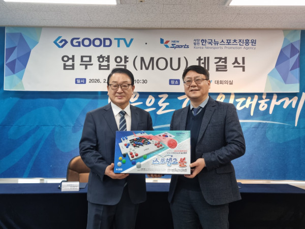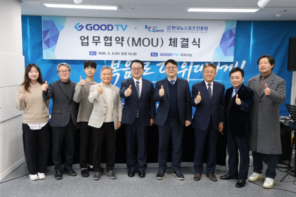 2026년 2월 4일(수), GOOD TV 기독교복음방송과 (사)한국뉴스포츠진흥원이 MOU 업무 협약을 체결했습니다 이번 자리는 K-뉴스포츠의 가치를 더 많은 분과 나누기 위한 의미 있는 출발점이 되었으며, K-뉴스포츠 선교와 전도 계획에 현장은 설렘과 기대감으로 가득 찼습니다. 그리고 올해 GOODTV배 전국기독교대안학교 스포빙고볼대회 또는 전국교회대항 스포빙고볼대회를 함께 추진하기로 했습니다.